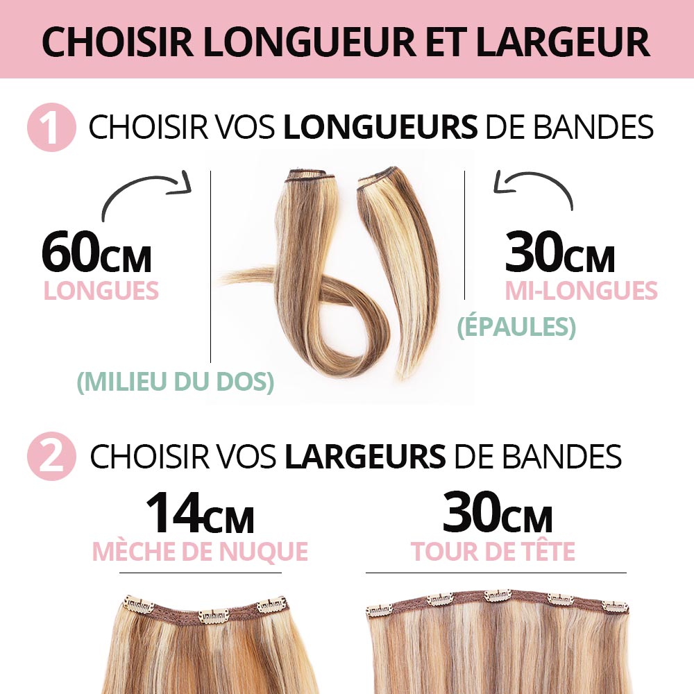 Extensions de cheveux à Clips 100% Naturelles SUR-MESURE (Largeur, Longueur & Poids AU CHOIX)